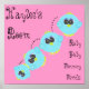 Round big, adorable eyed baby bird learns to fly and bounces down the poster. Change the name and wording and even the background colour to customise.