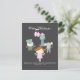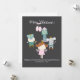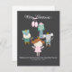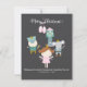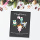 Cute, nutcracker characters, the prince nutcracker, grandfather clock, the mouse king, and the sugar plum fairy. Ballerina slippers dangle from the Merry Christmas greeting at top. Customisable greeting below along with family name and year. Pastel colours and dark grey background.