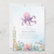 Fun and super cute octopus baby shower invitation. An adorable octoput takes centre stage in this watercolor invite. There is also an smiling shark peeking out from the corner and little sea horses in a coral reef! This charming invite is perfect for a sea or ocean themed party. See coordinating items in our shop, Enchanted Finch..