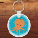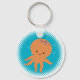 A cute orange cartoon octopus. Baby animal key chains. Blue ocean background. Gift idea for kids.