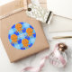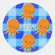 Cute Octopus Cartoon Blue Plaid Custom Name Classic Round Sticker