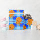 A cute orange cartoon octopus. Blue plaid pattern in the background. Baby animal wrapping paper rolls. Edit name to customise. Party decor and gift idea for kids.