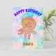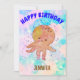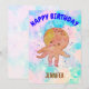 Adorable cartoon-style baby octopus invitations for kids parties. Its vivid colours and cute design will bring a smile to any child's face. Watercolor in pink, white and blue in the background. Edit name to customise it.