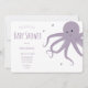 Cute Octopus Heart Purple Horizontal Baby Shower Invitation