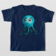 Cute octopus kids tee with a digitally coloured ink drawing depicting a cartoon blue sea creature with big eyes and tiny tentacles happily smiling.