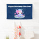 Banner with an image of a cute girly octopus with a flower on her head. Big bright eyes and a friendly face.
