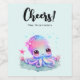 Bottle labels with an image of a cute girly octopus with a flower on her head. Big bright eyes and a friendly face.