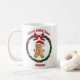 A cute cartoon gingerbread cookie wearing a Santa hat inside a stylistic Christmas wreath under the words “Official Cookie Taster.”