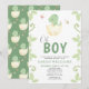 Cute Oh Boy Dinosaur Green Watercolor Baby Shower Invitation