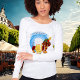 I love this shirt. I had written to the artist asking her if this picture was available on a shirt, and she wrote me back telling me where I could find the shirt. These shirts can be custom made to have a different saying. I loved this saying and went with it. The artist wrote me back later to tell me that she had seen my order go through. How's that for service? Pretty special. It's just as displayed. Perfect!