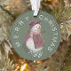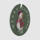Decorate your Christmas tree with a cute snow woman ornament. This design has a cute snow woman in an apron in the centre with a green background and white text. The date for the year is customisable. The snow woman is wearing a brown apron with pink heart pockets, and a burgundy coloured hat.
