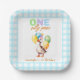 Cute One Silly Goose Blue Gingham 1st Birthday Paper Plate