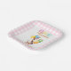 Cute one silly goose girl's 1st birthday paper plates featuring a cute watercolor baby goose with a party hat and balloons on a soft pastel pink plaid background.