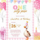 Cute One Silly Goose Pink Plaid Girl 1st Birthday Invitation