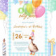 Adorable sweet one silly goose girls 1st birthday invitation featuring a cute watercolor baby goose with a party hat and balloons on a soft pastel pink plaid background.