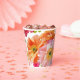 Cute Orange and Bright Pink Floral Bridal Shower Paper Cups
