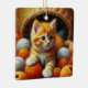 Personalised Christmas ornament. Sweet little orange striped kitten playing in a basket of balls of orange and white yarn. Add a personal message on the back of the ornament.