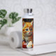 Personalised water bottle. Sweet little orange striped kitten playing in a basket of balls of orange and white yarn.