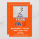 Cute Orange Basketball 2nd Birthday Invitation Postcard with a Photo // Cute boy`s basketball birthday party card for the 2nd birthday. The design has a large basketball and white text on an orange background. Personalise this birthday invite with a child`s name and a photo and personalise all the data on the invitation.