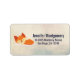 Address label with a cartoon drawing of a cute orange fox sleeping peacefully. A cream coloured background with faint geometric shapes.