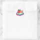 Cute Orange Cat Holding Red Heart on Rainbow Cloud Classic Round Sticker