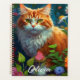 An adorable orange cat with yellow eyes sitting in pretty colourful flowers. Whimsical ai art. Add your name in the personalise area.