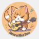 Cute Orange Cat Playing Guitar Classic Round Sticker