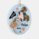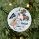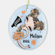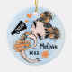 Cute, Stylish and Girly cheerleading Christmas tree ornament. Orange team colours. Featuring a cheerleader girl with Brown hair design and a watercolor blue background. More team colours as well as hair and skin colours available in my shop. Customise with your name and year. Great gifts and keepsake for Cheerleaders, Cheer Teams and Coaches.