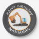 This cute orange excavator is enjoying rocks for lunch. Join the construction crew in fun cartoon style for a fun birthday!