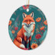 Illustration of cute orange fox and floral background ornament.