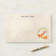 Lanscape orientation post it notes with a grunge-ish cream coloured background with trendy faint geometric shapes. Layered over top is a cartoon drawing of a cute orange fox sleeping peacefully. A green leaves wreath with 3 little red hearts behind. Personalised with a name at the top.