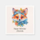 Cute Orange Fox with Floral Crown Birthday Napkin