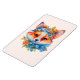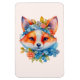 Flexible Magnet with an illustration of an adorable fox portrait with a blue and orange floral crown and collar.