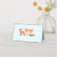 Folded place card with a graphic illustration of 2 orange foxes looking cute and happy.