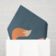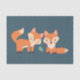 Tissue paper with a graphic illustration of 2 orange foxes looking cute and happy. Dark green background.