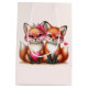 Gift bag with an adorable image of 2 foxes wearing cute rose tinted heart glasses. Decorated with heart accents.