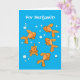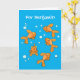 Cute orange goldfish on blue cartoon illustration card