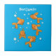 Cute orange goldfish on blue cartoon illustration tile