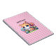 An adorable kitten sitting in a patch of blue and pink flowers and white polka dots personalised notebook.