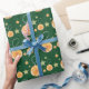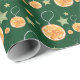 Cute Oranges and Stars On Green Wrapping Paper