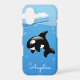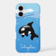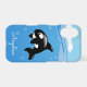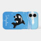 Adorable cartoon chubby Orca whale with a tiny white heart near its tail.