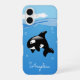 Cute Orca Whale in Ocean with Custom Name iPhone 16 Case