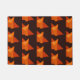 Origami fox doormat with a geometric pattern made of cute origami foxes looking at you wondering why you are looking at them, over dark brown background. This cute fox pattern doormat will make a great gift for someone who loves foxes and origami and paper crafts. This funny cartoon fox was drawn looking at an origami I made. Looking at it I just saw it in ints cuteness, only eyes were missing so I made them from paper, too, and glued them to the cute animal.