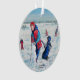 Cute Original Artwork Ornament, Classic Snow scene Landscape Art with Children Playing In Snow, Christmas Season/ Winter Landscape Art.