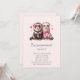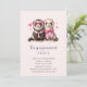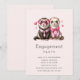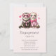 Engagement party invitation with a cute illustration. A pair of otters in pink people clothing. Wearing striped shirts and one wearing a tie and the other wearing a bow. Surrounded by love hearts.