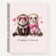 Spiral notebook with a cute illustration. A pair of otters in pink people clothing. Wearing striped shirts and one wearing a tie and the other wearing a bow. Surrounded by love hearts.