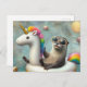 A cute otter relaxes in an inflatable unicorn floatie on a river float trip AI generated art