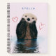 This adorable otter notebook will be certain to make your child enjoy learning to write, taking notes, journalling, sketching, or writing in their diary. This trendy chic design features a cute otter in a pond, with a gentle pink background and red hearts. The pond also has blue graphic ripples in the water along with the subtle reeds. Use the personalise function to add a name or initials.