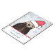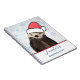 Personalised notebook with a nature photograph of a cute otter holding his face in his paws. Wearing a red, hand-drawn christmas hat. A snowflake background pattern.