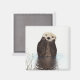 A magnet with a photo of a cute otter standing upright in the water with his paws holding his face. His head cocked to the left looking sweet and adorable.